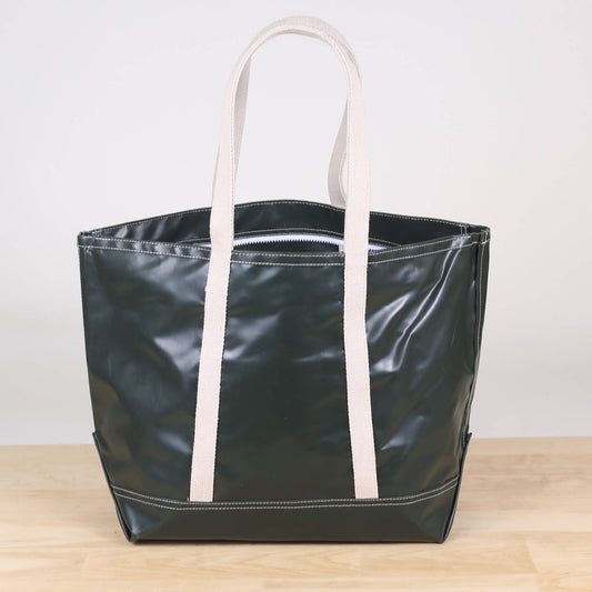 Striped Box Heavy Canvas Tote Bag with Leather Handles