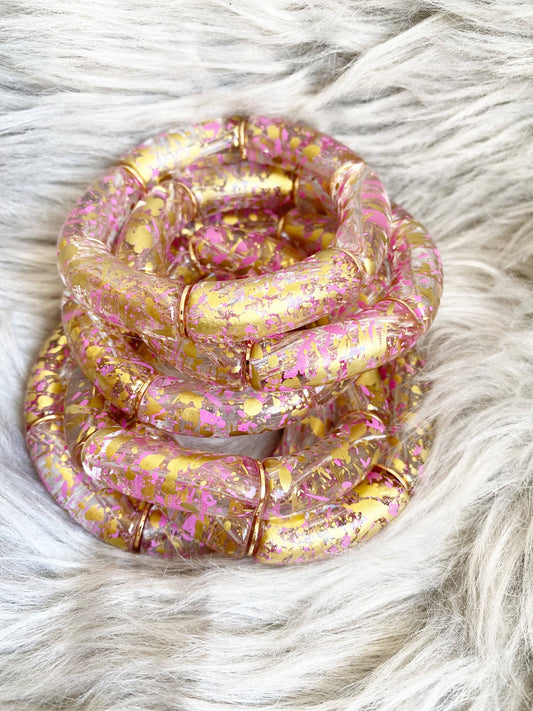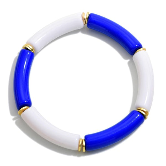 Tube Bead Stretch Bracelet with Gold Tone Accents