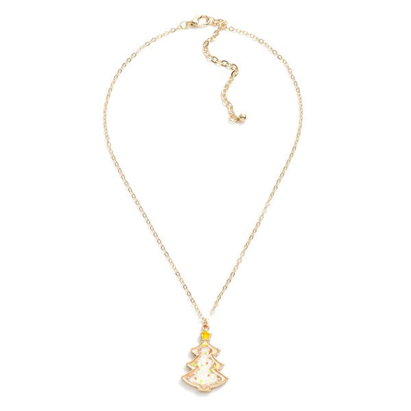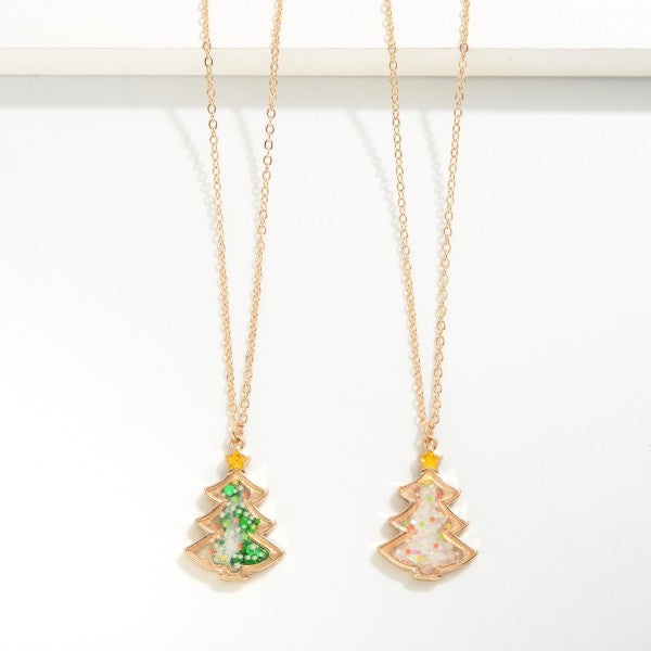 Kids Dainty Chain Necklace With Christmas Tree Glitter Pendant.