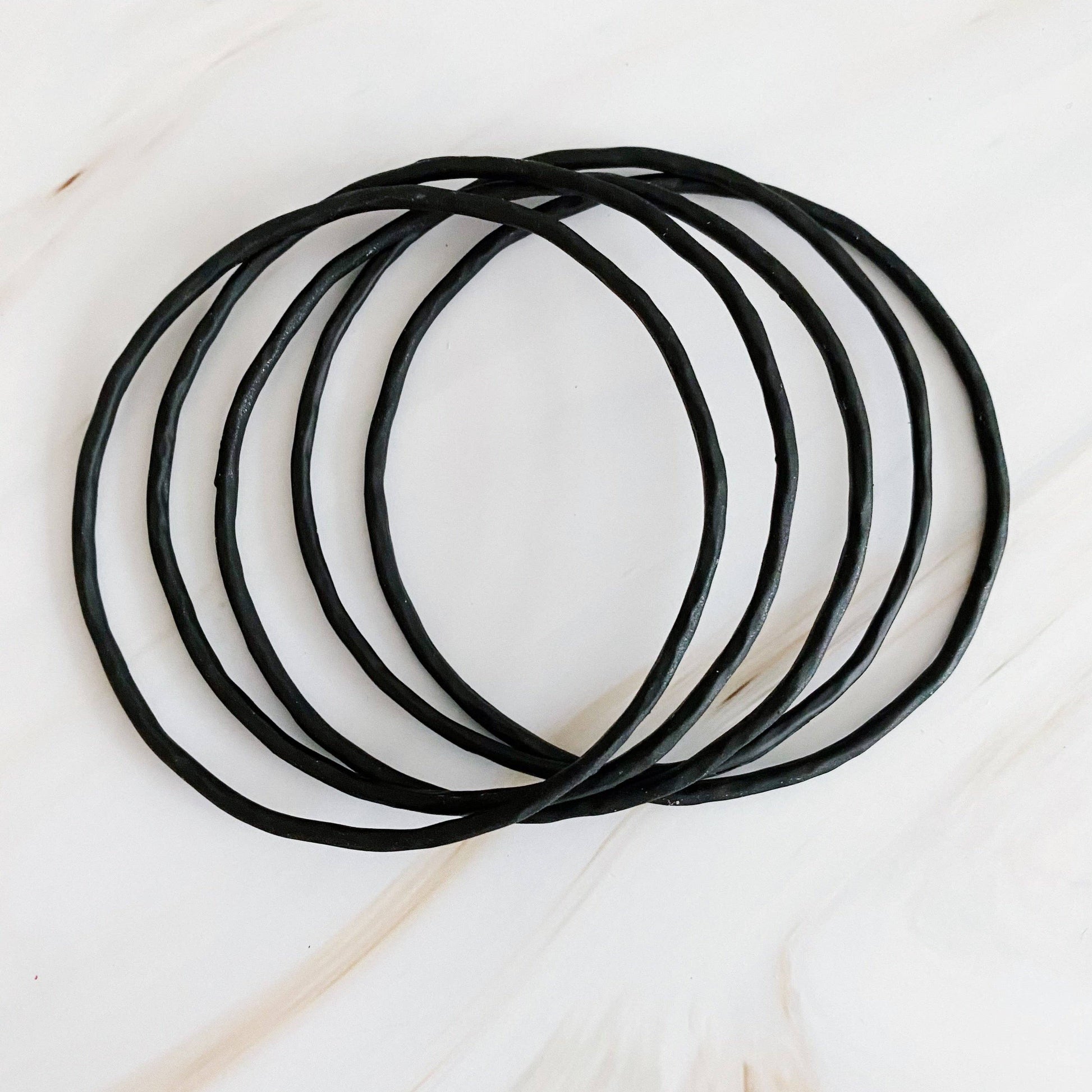 This Color of Your Game Slim Bangle Set of 5 offers lightweight and stylish bangles for any occasion. Sets available in a range of exciting colors and feature a durable matt rubber finish for lasting vibrancy. An ideal set for completing any look with a touch of modern flair and team spirit.
