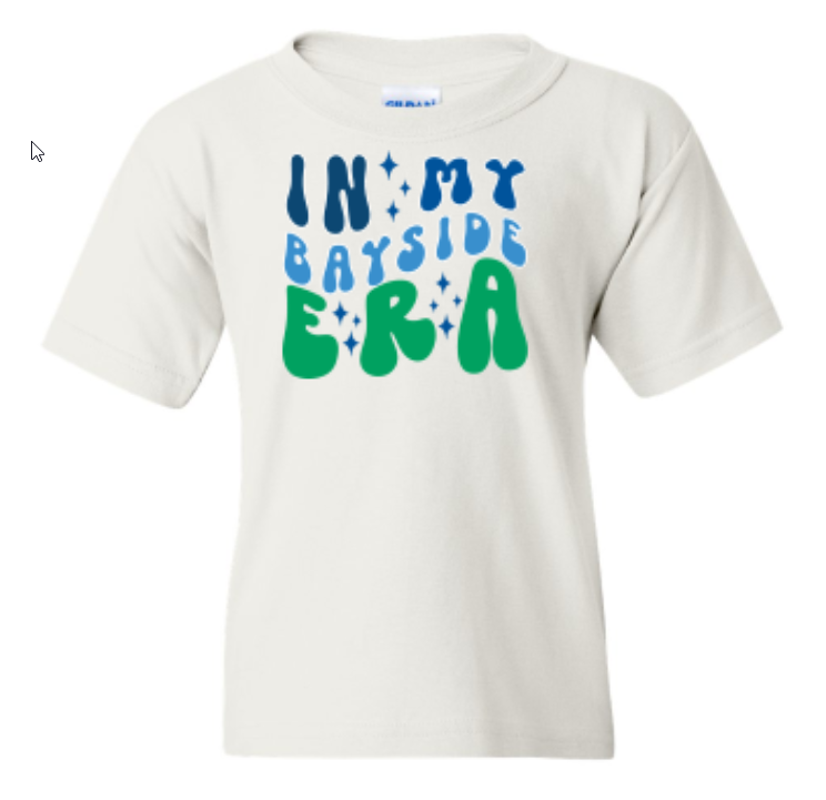 Calling all Taylor Swift fans! This fun Bayside t-shirt shows your school spirit in a brand-new way. Available in sizes from YXS through AM.
